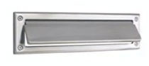 Mail slots can be installed on a security door that has a double bar center freeze system. The mail slot is mounted in a solid panel and fitted to this center section of the door. Letter size only.